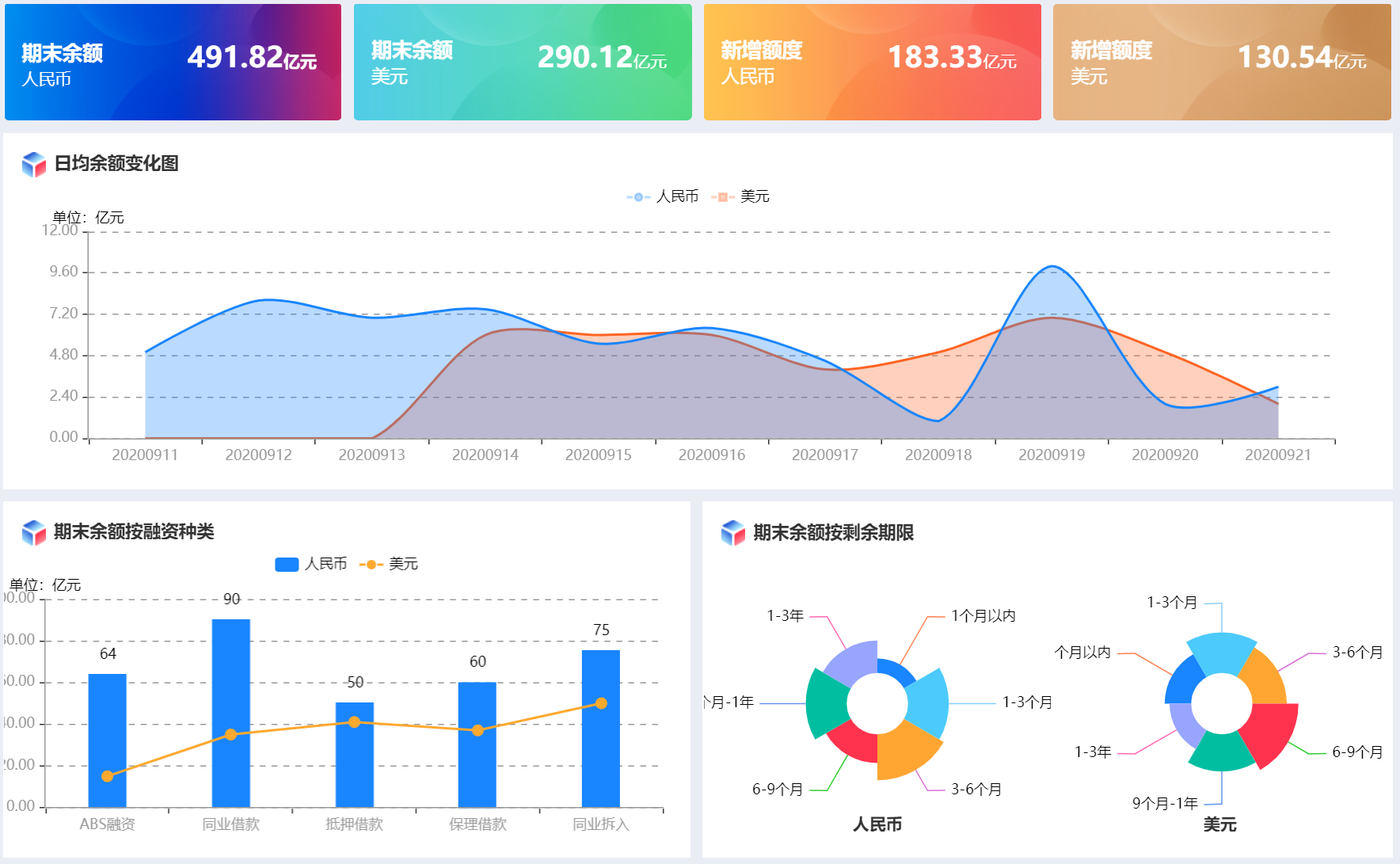 基于BI引擎多维分析授信、成本、还款、余额等数据,生成资金驾驶舱辅助决策。