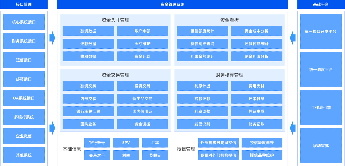 覆盖融资、投资、票据、内部调拨等业务,实现全流程线上化、规范化操作。